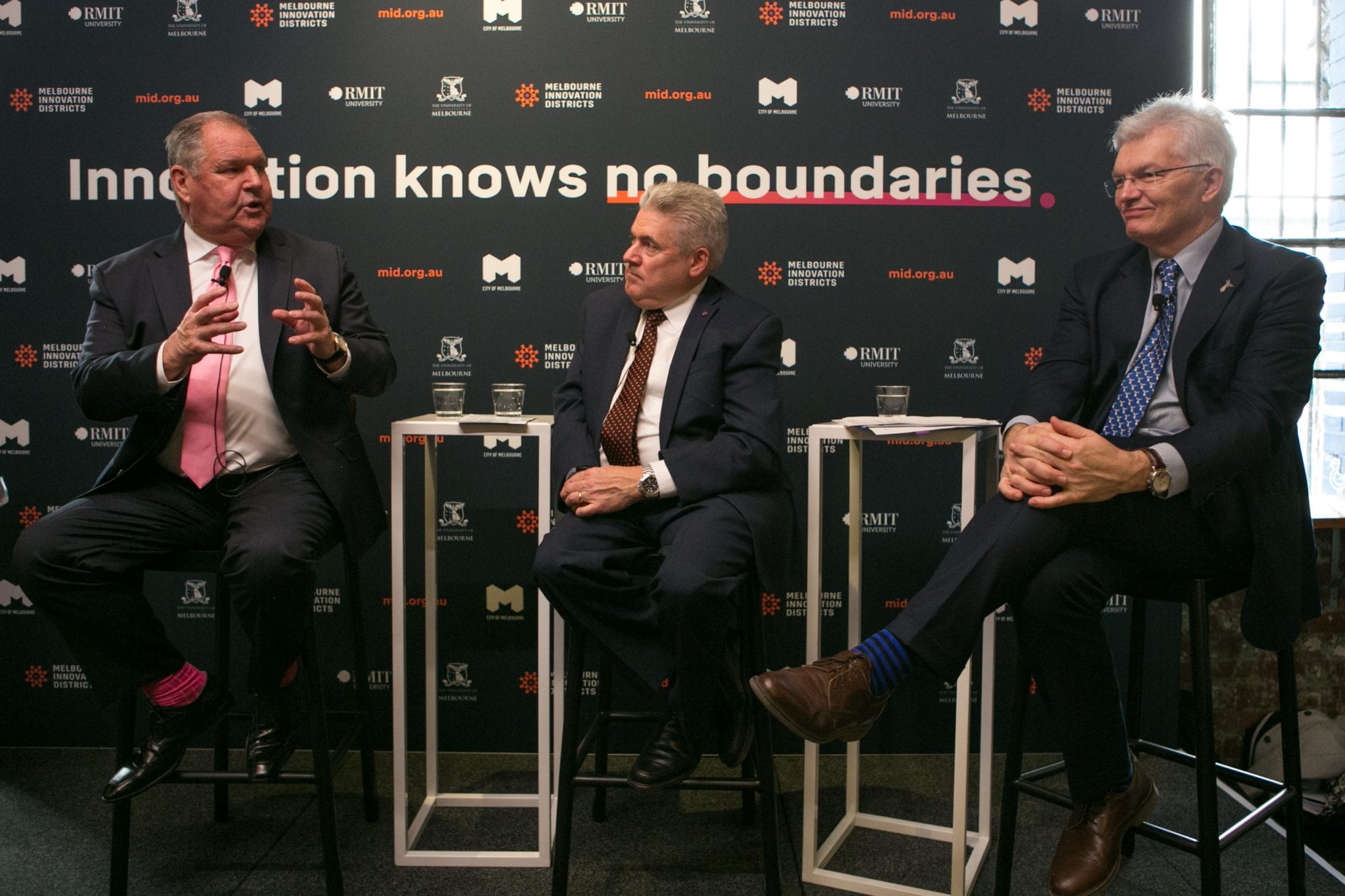 Welcomed by Wurundjeri elder Aunty Di Kerr, Lord Mayor Robert Doyle, University of Melbourne Vice-Chancellor Glyn Davis and RMIT University’s Vice-Chancellor Martin Bean took part in a panel conversation about partnering to innovate for the future of Melbourne.